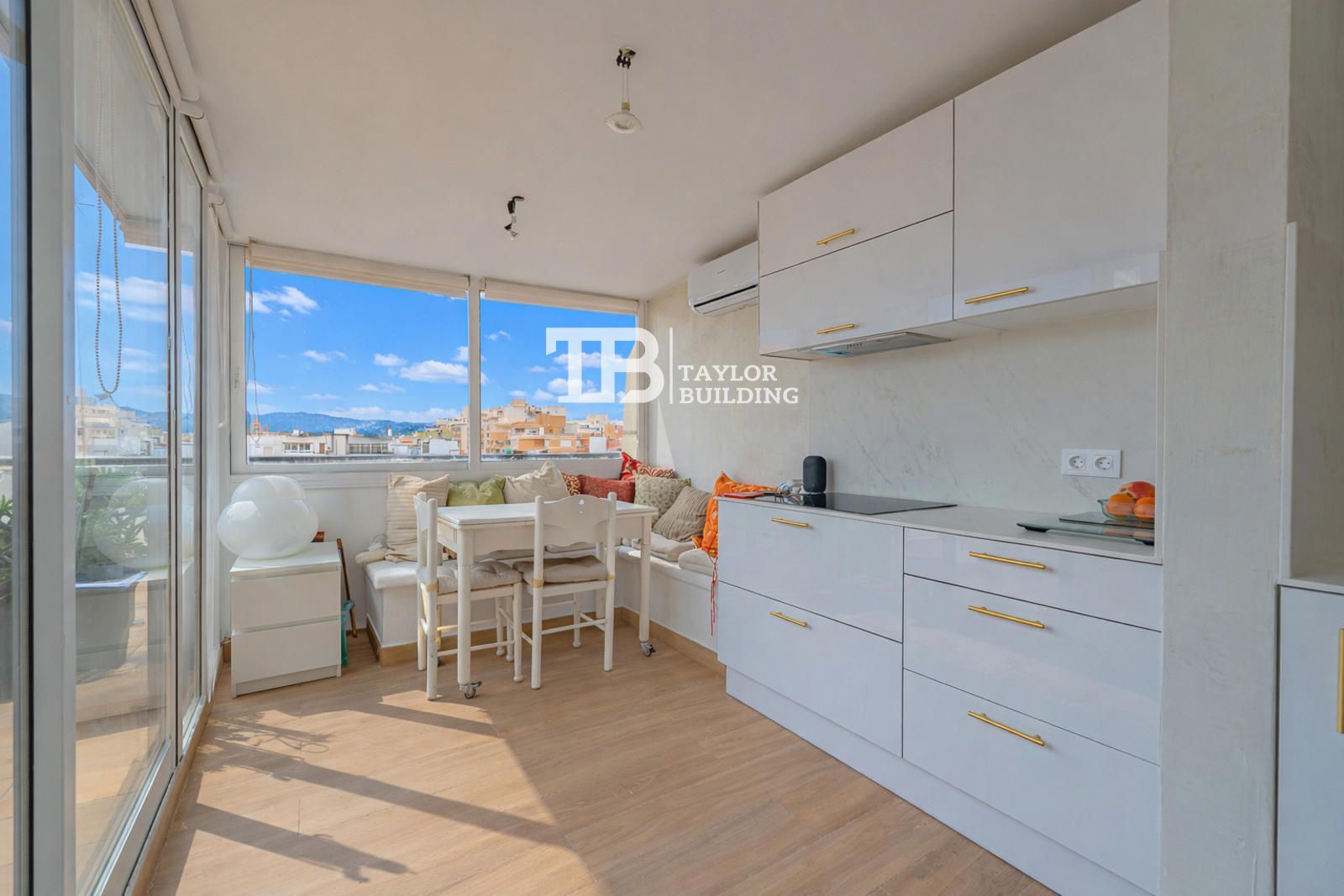 Taylor Building presenterar sig till ett mycket högt pris med vacker utsikt, beläget i Playa-metropolen och med mycket skydd från den antika Palma-kistan, i Foners-området, en mycket efterfrågad byggnad i närheten av havet och i centrum av staden för komfort, och erbjuder en ljus vardagsrumsdel som är omvandlad till husets huvudutrymme, perfekt för att spendera stunder med familj eller vänner. Köket är fullt utrustat och förberett för dagen, med plats för mat och en praktisk fördelning som möjliggör maximal vattenutnyttjande och komfort. Badrummet har renoverats och har en modern duschkabin, vilket erbjuder en verklig stil och funktionalitet. Reformen har förverkligats i detta mycket stora vardagsrum och möblernas estetik. Sin duda, en av de stora huvudpersonerna i denna fastighet, är en mycket spektakulär privat terrass på cirka 45 m². Detta rymliga yttre utrymme låter dig njuta av medelhavsklimatet året runt. Terrassen låter dig beundra den vackra utsikten över Bellver-slottet och Palma-katedralen, som båda är mer symboliska för stadens monument. Det är en perfekt plats att skapa en avkopplingszon där du kan koppla av vid ett bord utomhus, där du kan koppla av i solen och njuta av utsikten och lugnet. Cyklar, sportutrustning och annan sportutrustning. I denna utrustning justeras lufttillförseln efter konduktiviteten, vilket gör att du kan bibehålla en stabil temperatur under de högre temperaturerna, och den medelstora gasvärmen garanterar komfort under hela vintern.