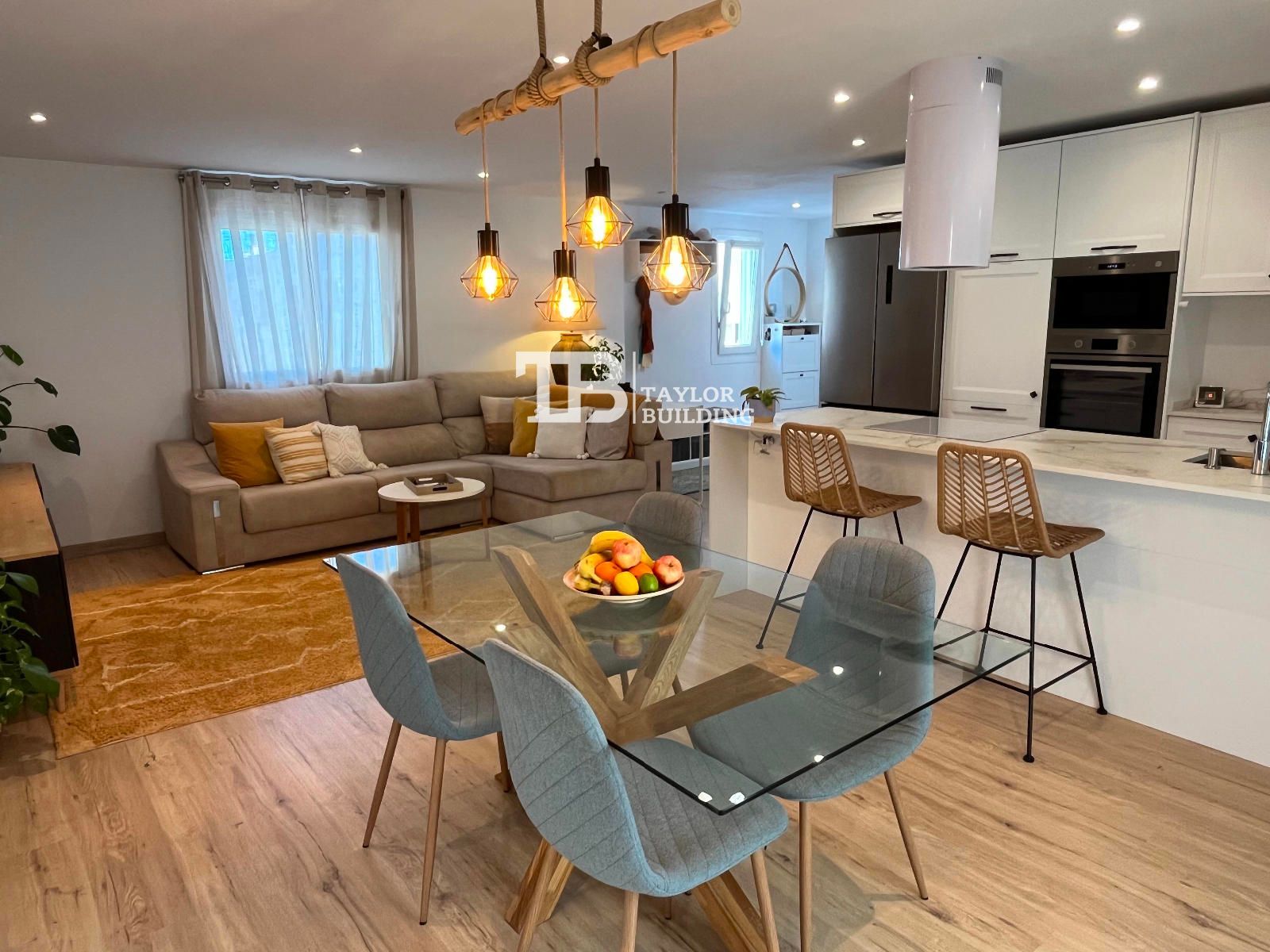 Taylor Building erbjuder uthyrning av denna exklusiva takvåning i El Molinar, ett ljust, modernt utrymme perfekt utformat för att njuta av medelhavslivsstilen. Fastigheten utmärker sig för sin eleganta kombination av komfort, rymlighet och modern design, perfekt för dem som söker kvalitet och lugn bara några minuter från havet och Palmas centrum. Takvåningen har tre sovrum och två badrum, inklusive en master suite med eget badrum, klädkammare och direkt tillgång till terrassen. Vardagsrummet med matplats i öppen planlösning, med ett fullt utrustat modernt kök, är fyllt med ljus tack vare sina stora fönster som naturligt förbinder interiören med exteriören. Den stora privata terrassen blir hemmets hjärta och erbjuder en idealisk plats att koppla av, ta emot gäster eller njuta av solen och öns mjuka brisar i total avskildhet. Dessutom finns en tvättstuga och ett multifunktionellt slutet utrymme, som för närvarande används som gym, vilket ger komfort och mångsidighet till helheten. Takvåningen inkluderar två underjordiska parkeringsplatser med direktåtkomst via hiss, vilket garanterar maximal komfort och säkerhet. Villkor: Månadshyra: 3 000 € (avgifter och internet ingår; el ingår ej) Tillfälligt boendekontrakt: från 10 oktober 2025 till 20 september 2026. Hyresgästen betalar en månads provision + 21 % moms och två månaders deposition.